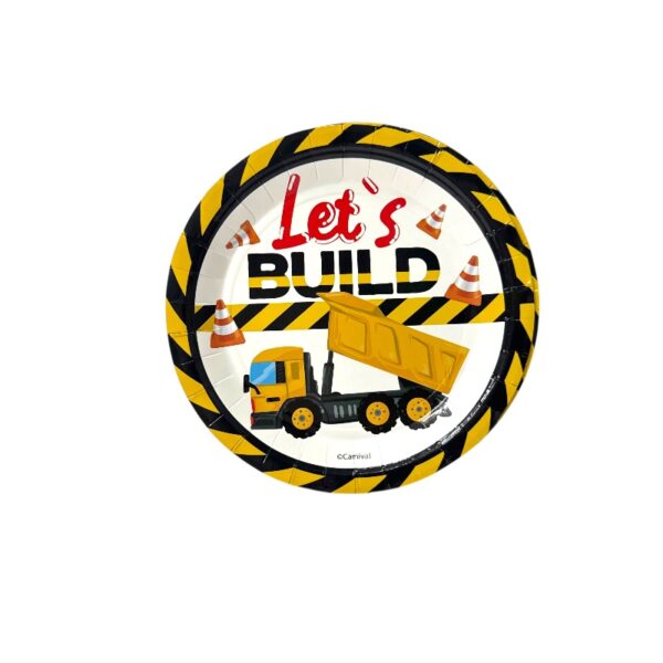 Plato desechable redondo de Construccion (Concretera) de 7 pulgadas (17.80cm) Perfecto para cualquier celebracion o fiesta.