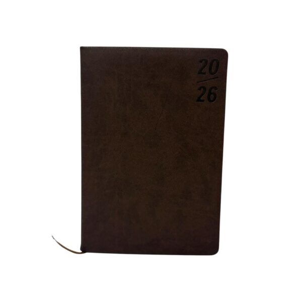 Agenda ejecutiva diaria año 2026 de cuero sintetico con paginas rayadas y fechas, Paginas color crema, orilla dorado