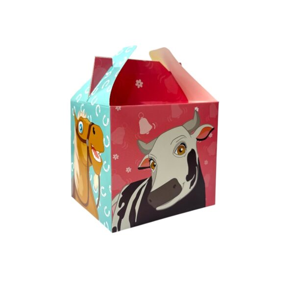 Set de cajas de regalo de 6 piezas, material carton de alta calidad, resistente y duradero, con diseño de la Granja De Zenon. Ideal para darle un toque campestre a tu fiesta.