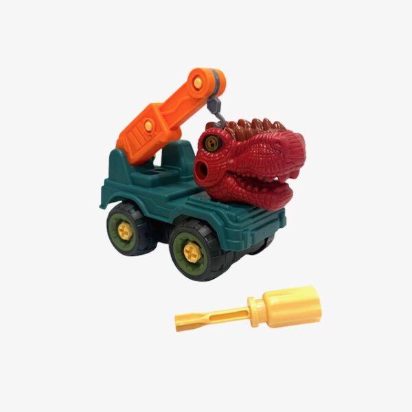 Concretera/Grua con diseño de cabeza de  dinosaurio, desarmable con brazo movible y desarmador, fomentando las habilidades motoras y la resolución de problemas, medidas aproximadas: 16x13x8cm.