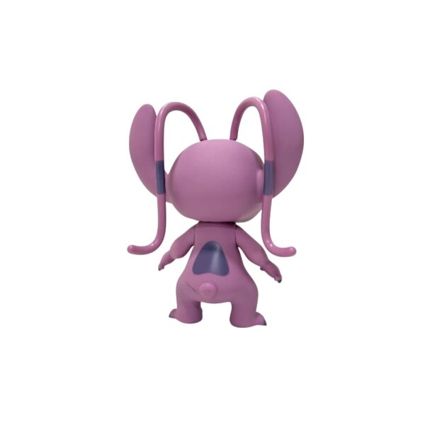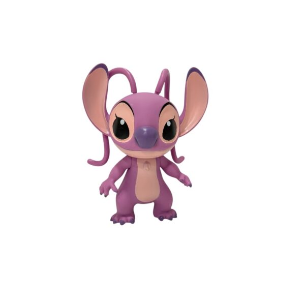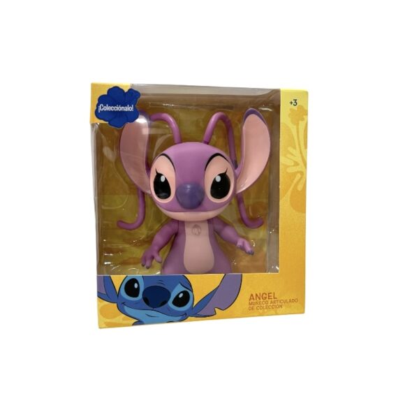 La figura presenta a la compañera de Stitch, Angela, en su caracteristico color rosa lavanda, con detalles en color morado oscuro en las orejas y la nariz, con uu tamaño de 7 pulgadas perefecto para niños y niña de 3 años en adelante.