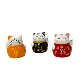 Gato de la suerte y la fortuna/Maneki-Neko pequeño de ceramica en 3 diferentes colores. Cada color tiene su significado: