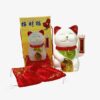 Gato de la suerte/Maneki-Neko de ceramica, incluye un accesorio (Almohada). Dimensiones aproximadas: 18×10 cm.