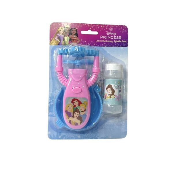 Set lanzador de burbujas automatico en blister con diseño de las inigualables Princesas Disney, mecanismo tipo helice o ventilador, incluye un envase de la solucion para burbujas. Perfecto para inspirar la imaginacion y alegria al aire libre.