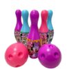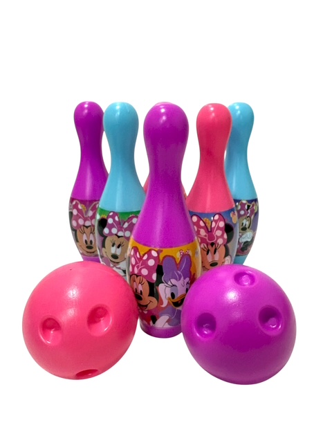 Set de boliche de la linda Ratoncita Minnie Mouse, con 6 piesas de pinos de PVC con 12 cm de altura y 2 bolas.