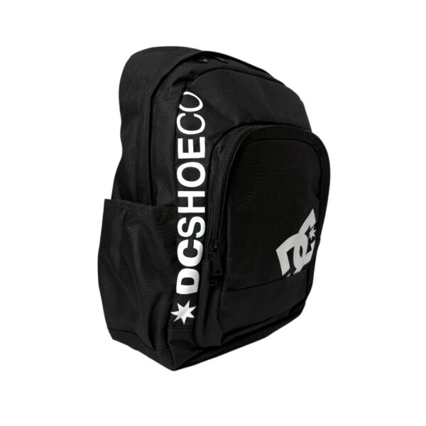 Mochila/bolson tela de polyester de DCSHOECOUSA, con 1 compartimiento en la partte frontal y 2 compartimientos a los laterales para cagar botellas, ziper metalico, cintas traseras ajustables anchas y acolchonadas, con un deposito para portar laptop, medidas aproximadas 45x28x12 cm.
