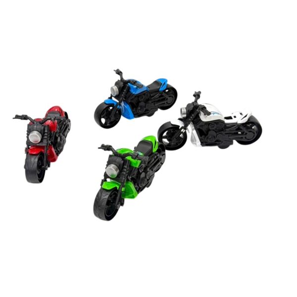 Motocicleta con estilo deportivo de material pvc resistente y duradero, ideal para el juego activo y una muy buena opcion para coleccionar junto a otros vehiculos, disponible en colores variados.