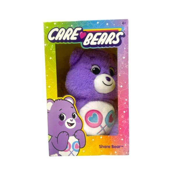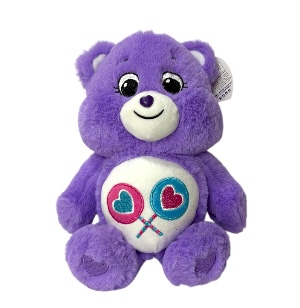 Peluche de oso cariñosito (share bear) con dos inconfundibles paletas de corazón en la barriga, de material poliesterde felpa, ojos de pvc y unos corazones bordados en las patitas, viene en una caja, medidas aproximadas:33x61x28cm.