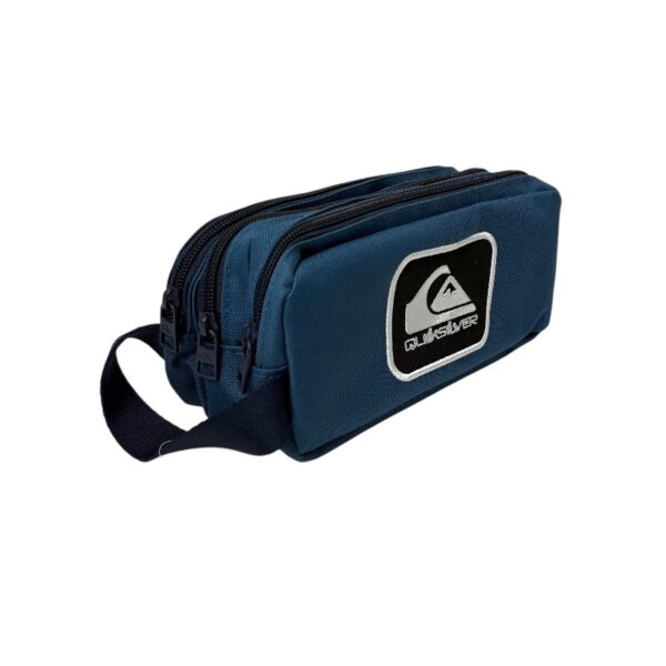 Estuche de Quiksilver, de material de polyestrer, con 3 compartimientos, de color azul y un agarradero para andarlo en la mano, medidas aproximadas: 24x10x12 cm.
