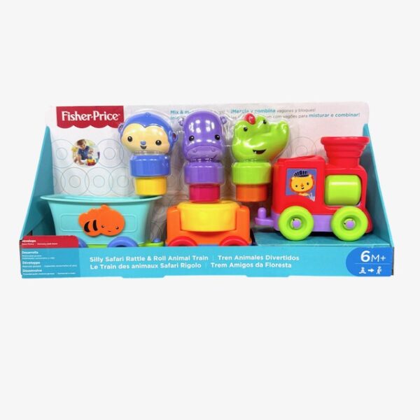 Safari tren de animales de fisher-price, incluye tres adorables amiguitos del safari (hipopótamo, mono, cocodrilo),con ruedas de accion libre para deslizar el tren en el suelo, para bebes de 6 meses en adelante,medidas aproximadas: 66x8cm.