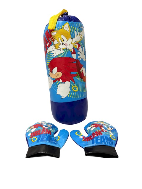 Set de boxeo infantil de sonic, incluye un saco de boxeo en forma cilíndrico y un par de guantes de boxeo acolchados, mejora la coordinación, el equilibrio y las habilidades motoras, medidas aproximadas: 45x15cm