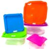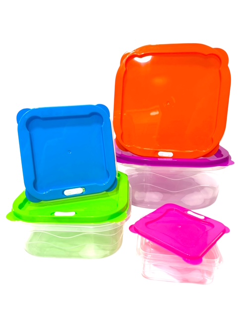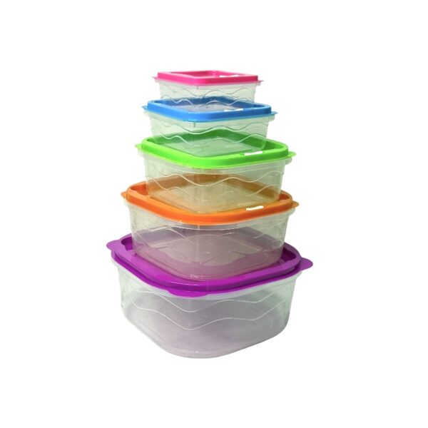 Set de comidera de 5 piezas de diferente  tamaño, aptos para microonda, refrigeradora, lavavajillas, con tapadera segura y avertura con cierre para que le salga el vapor, material de plastico resistente, medidas aproximadas en set: 28x28x10cm