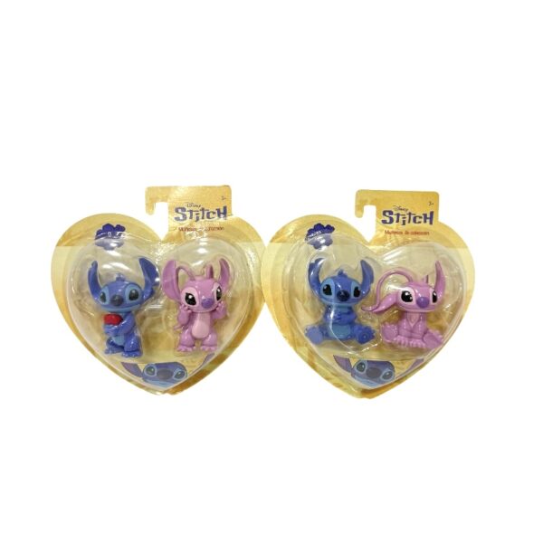 Set de 2 piezas de mini figuras de stitch y su compañera angel, hechas de material pvc de alta calidad, resistente y duradero.