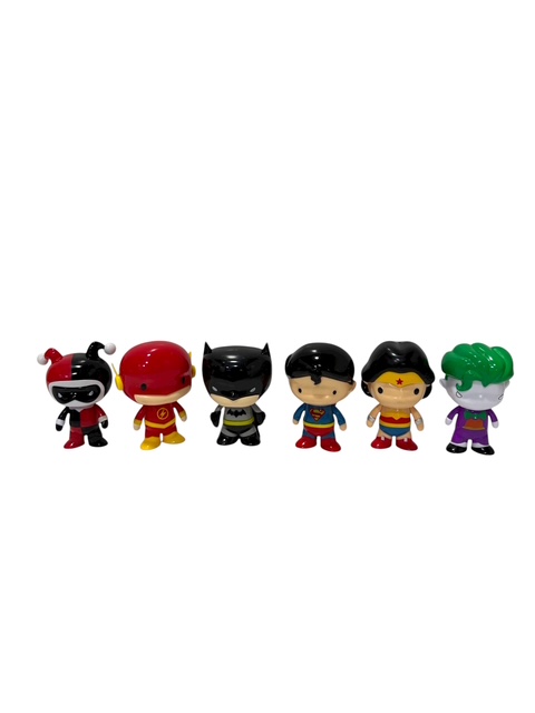 Set de figuras de colección, el set icluye una seleccion de heroes y villanos de material pvc/vinilo, muñecos articulables de la liga de la justicia, medidas aproximadas 4cm.