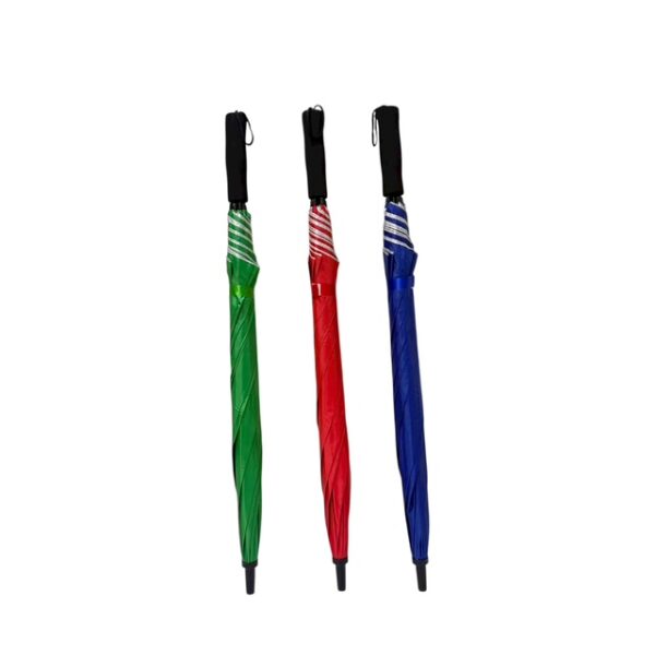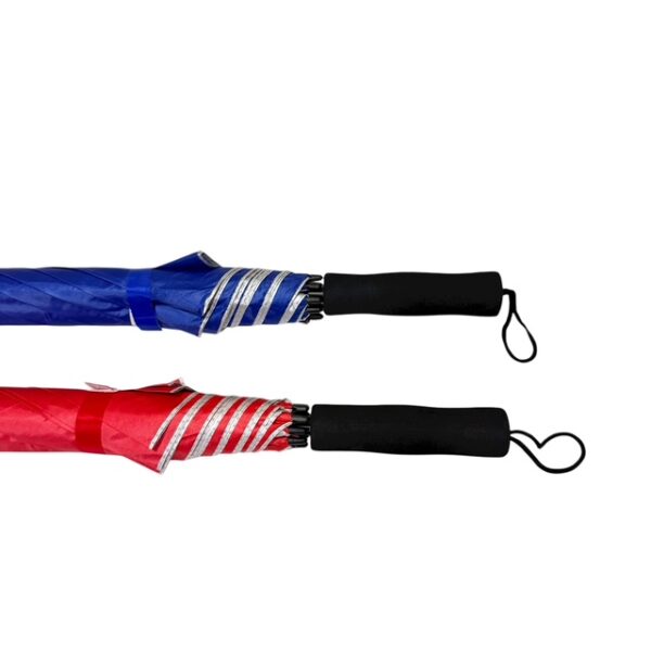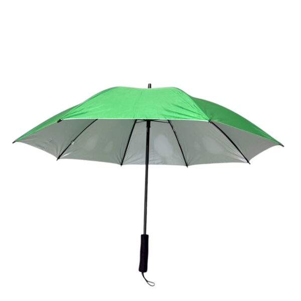 Sombrilla con mango ergonomico de espuma antideslizante, de tela con un filtro especial que bloquea los rayos UV y es totalmente impermeable, de baston pvc. Dimensiones aproximadas: 60 cm.